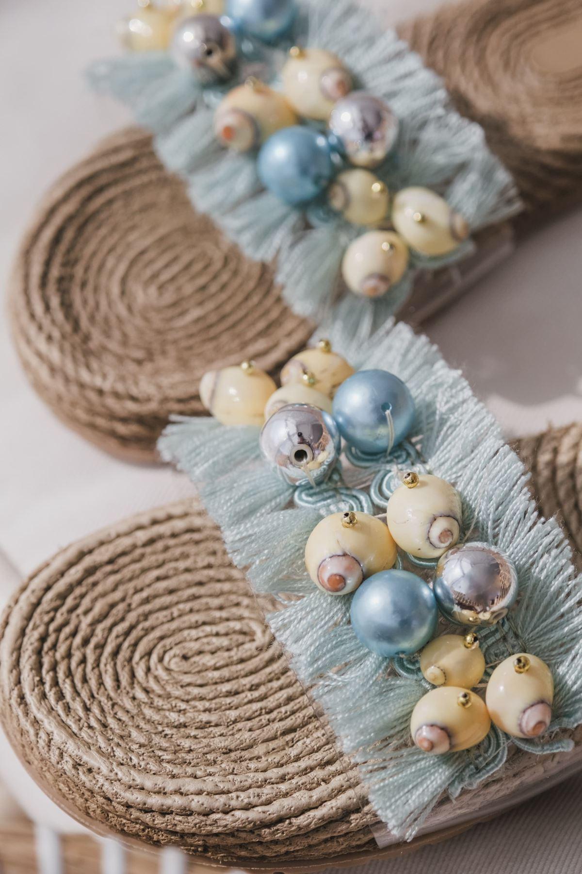 Plave papuče sa perlicama